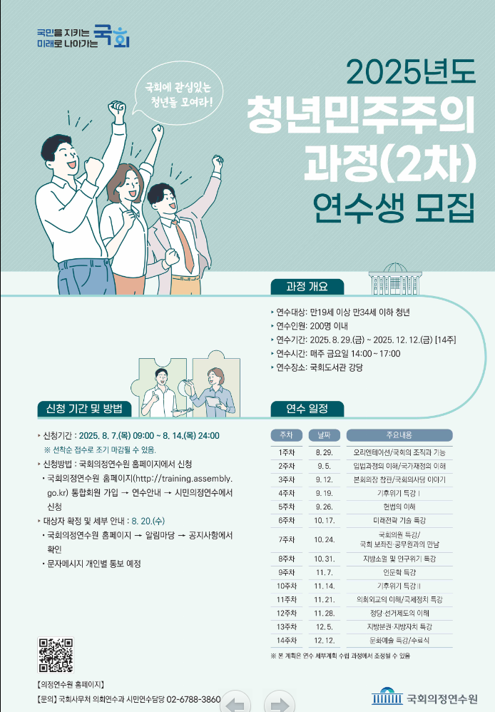 2025년도 국회 청년민주주의과정(2차) 안내